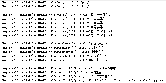 | formatBlock | 添加一个HTML块式标签在选中行 | 一个HTML标签名 | 如H1,P等 |