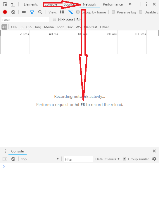 找到Network选项打开,根据提示按下F5刷新。