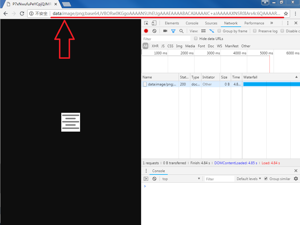 粘贴到浏览器地址栏也是可以被显示的(注意目前开发者工具里面图像路径已经变为了base64数据,而不是之前的图像路径)。