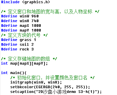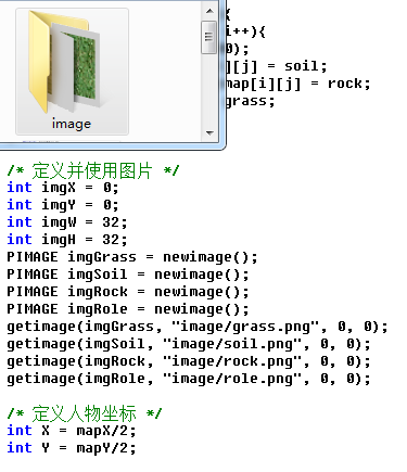 - grass 这1是后文的地图中的草,这本来是用预处理声明的草常量值为1的,但因为进度原因,这里先还是用一般变量来表示