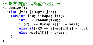 接下来两个for循环遍历整个地图数组,这里把数组每个元素走一遍称为遍历,以后遍历这个词会经常用到。
